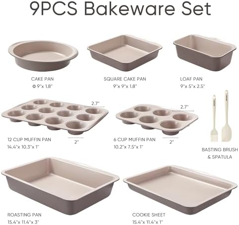 Professional Nonstick Coating: Carote 9-Piece Bakeware Set uses a professional nonstick coating that makes it easy to release either cakes, cookies or breads with effortless cleaning.