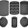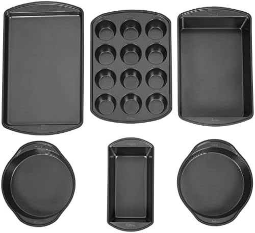 Durable, Versatile: This 6-piece baking set is built to last, thanks to its high-quality materials. The variety of pans??baking sheet, oblong pan, 2 round pans, loaf pan, and cupcake/muffin pan??allows for endless baking possibilities.