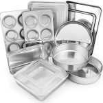 12-Piece Stainless Steel Bakeware Sets, Metal Baking Pan Set Include Round Cake Pans, Square/Rectangle Baking Pans with Lids, Cookie Sheet, Loaf/Muffin/Pizza Pan, Non-toxic & Dishwasher Safe |